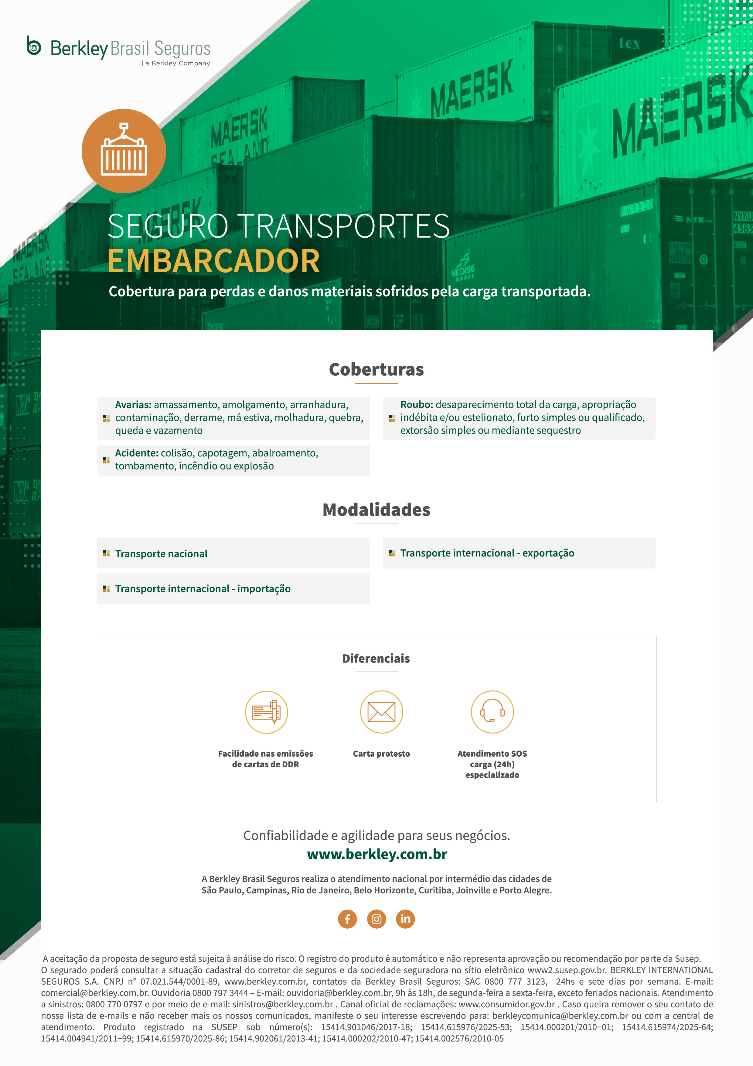 Cobertura para perdas e danos de mercadorias ocorridas durante o transporte.