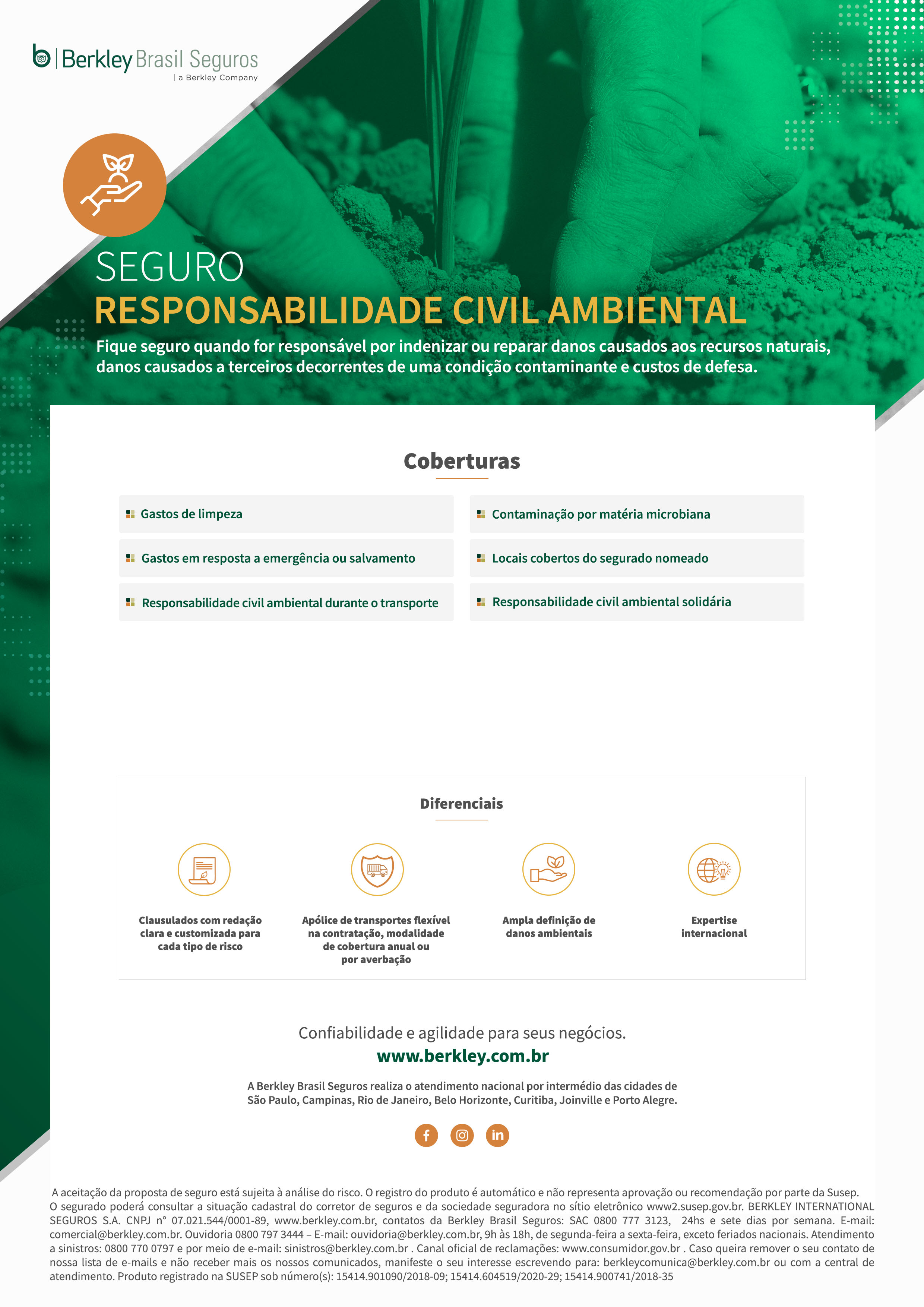 Fique seguro quando for responsável por indenizar ou reparar danos causados aos recursos naturais, danos causados a terceiros decorrentes de uma condição contaminante e custos de defesa.