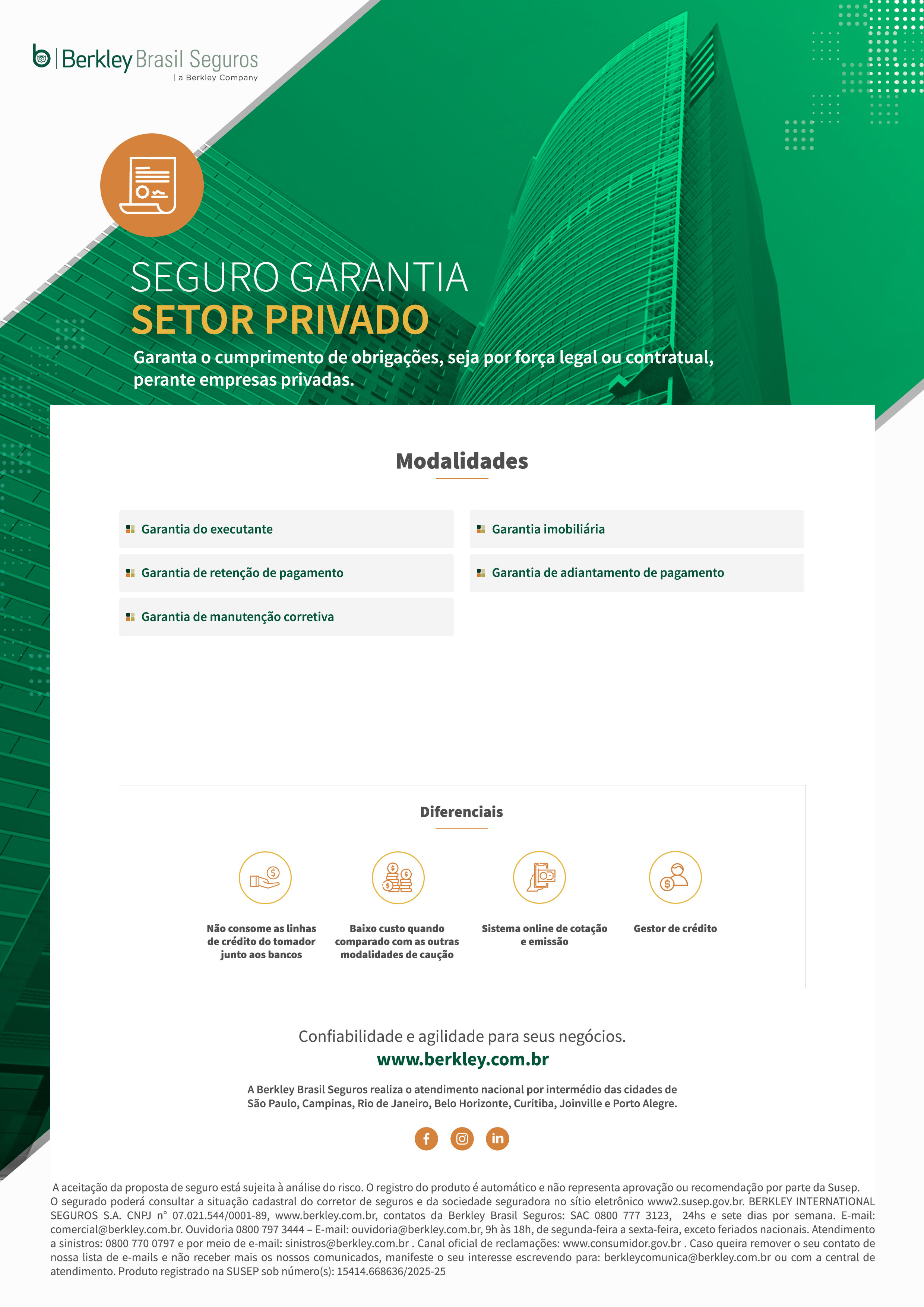 Garanta o cumprimento de obrigações, seja por força legal ou contratual, perante empresas privadas.